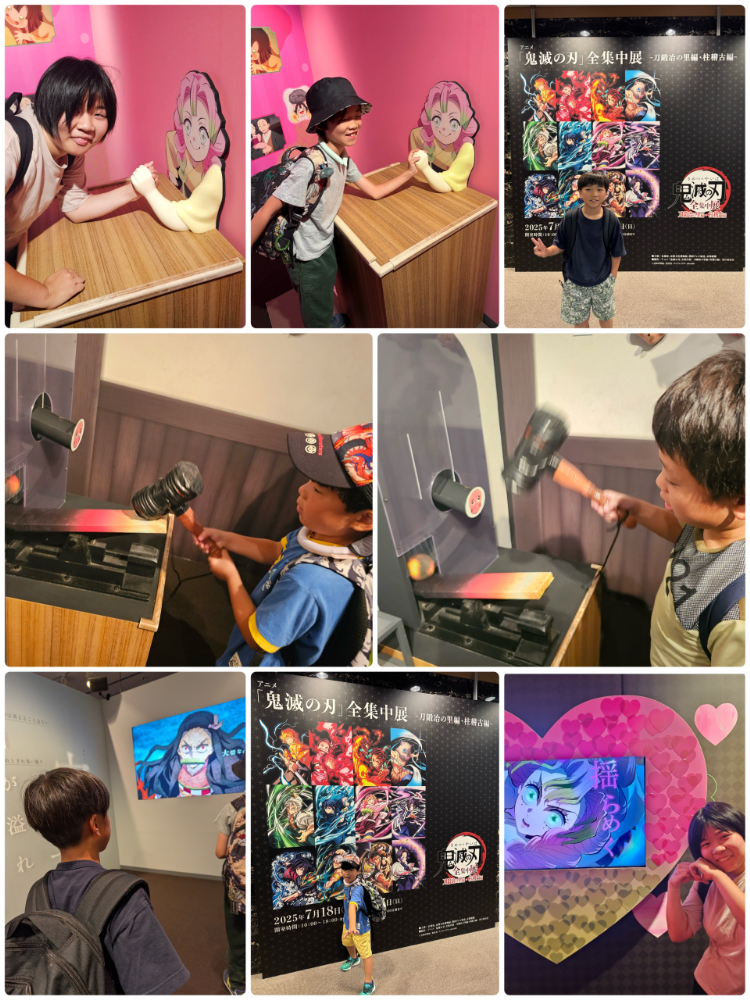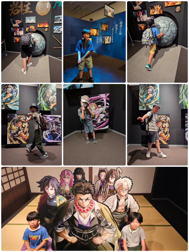 シルキーの子ども達にも人気の鬼滅の刃、現地の職員さんの指示に従いながら、順に展示を巡りました。