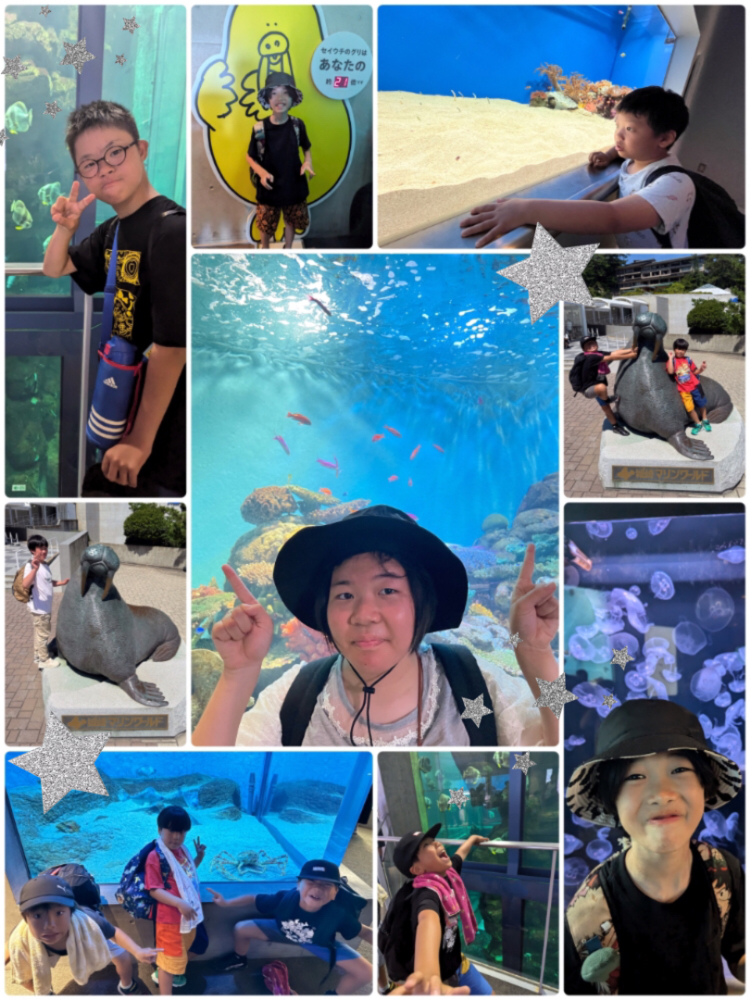 はじめに、魚やクラゲなどの水槽展示を観覧し、ひと通り館内を回ってから館内のレストランでお昼ごはんを食べました♪