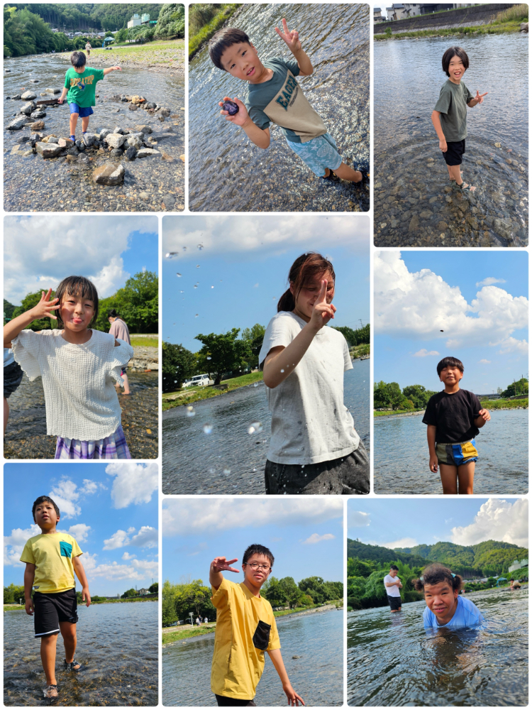 この日は午前中は学習をして、午後は鴨川公園に水遊びに行っています。