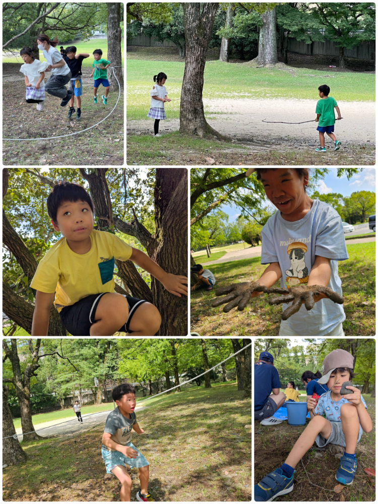大縄跳びや自然のものを使っての遊びなども楽しみました☺️