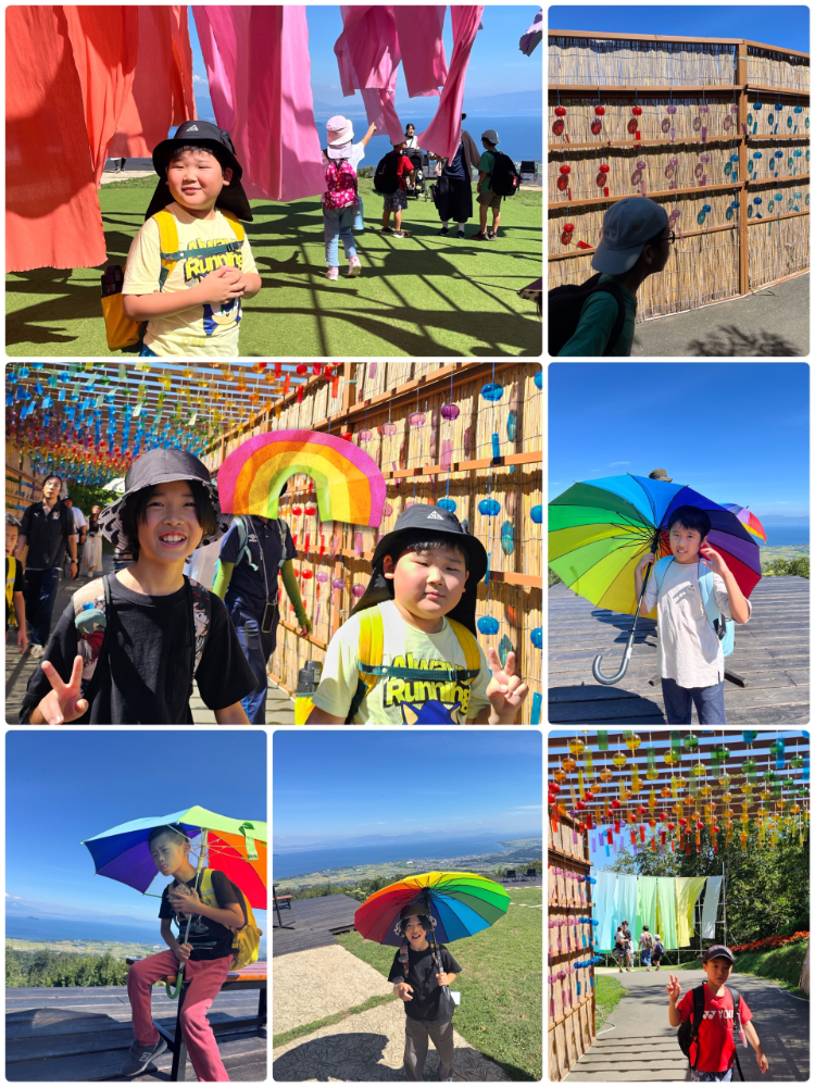 貸し出しのあった虹色のアンブレラで写真撮影を楽しむ子もいました。