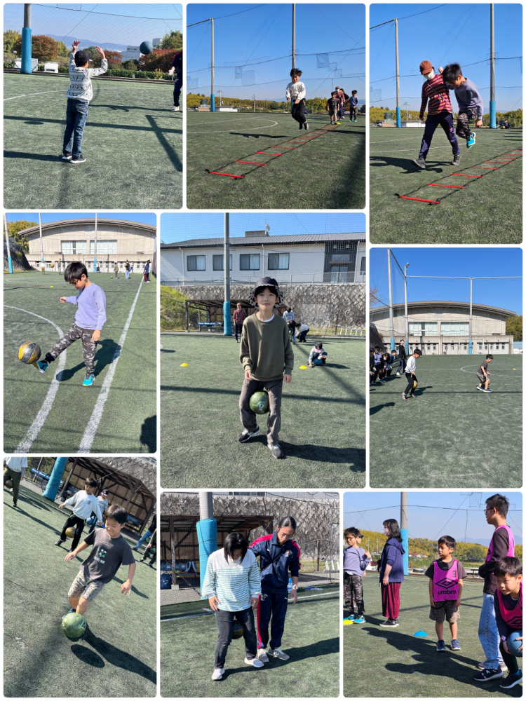 いつものウォーミングアップの後は、ボールを足で挟んで動く、という新しい運動に挑戦しました⚽️🔥