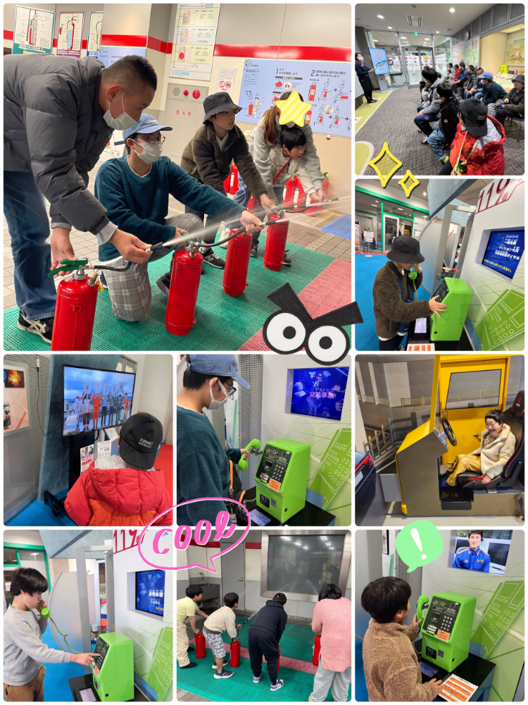 午後からは防災センターです。今日は地震体験と火災の消火体験 をしました。