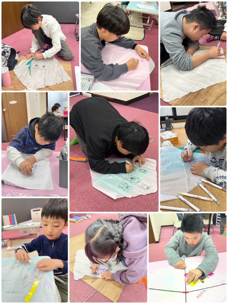 この日は、午前中に2コマ時間を決めて学習と凧づくりの工作をし、午後は出来上がった凧を揚げに行きました🪁
