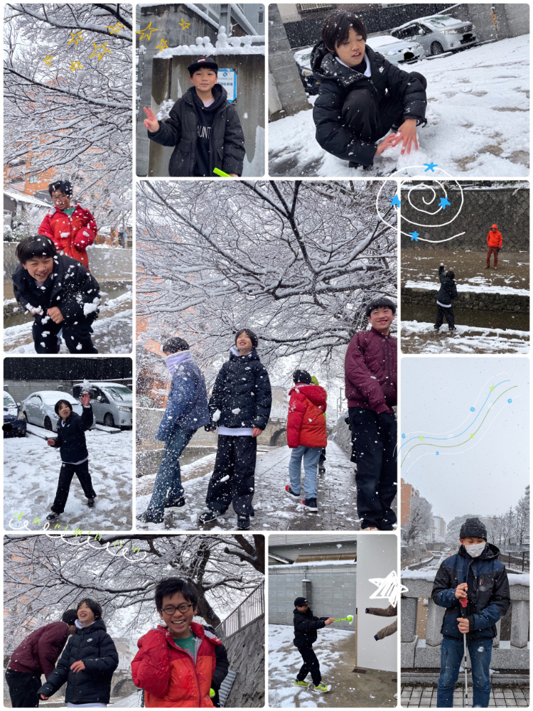 めったに見られない京都市内の雪景色にテンションがあがる子どもたちでした。スタッフも含めて皆んなで雪合戦をして楽しみました❄️